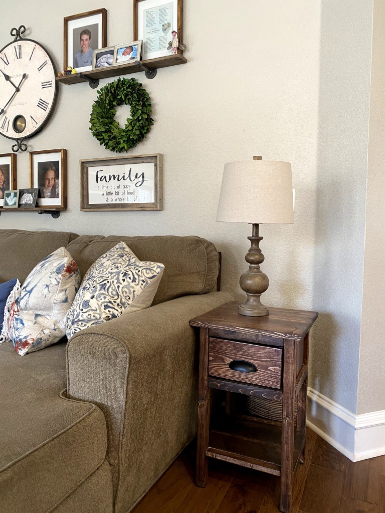 The sources for this room are varied between Wayfair for the couch, Amazon home for the rug and drapes, Company Store for some of the bedding, Pottery Barn for most of the pillows and other things were gathered along the way as she and I both shopped for this space. We both pored over color choices for the room, and Angela ended up selecting the primary paint color and it is one of my favorites. One of my goals as a designer is to help each client define there own personal style, and I feel like Angela and I really honed in on what she wanted for this space.