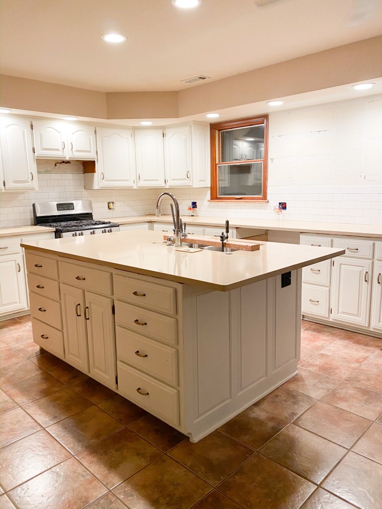 Our countertop installers were scheduled to arrive around 8:30 the morning of the install. We woke up early and made sure that the kids had all eaten and gotten out of the kitchen in order to give the installers plenty of time to work. Five hours later, our install crew arrived. Help me, Rhonda. During that time, Justin removed all the countertops himself, which saved us a little money. This is not our first renovation, so we’re familiar with having to wait on installers and etc. Buuuuuut, I have to say, we’d both forgotten how stressful it is when someone is that late. To complicate things further, the install was scheduled for the same day as our oldest son’s very first homecoming dance. Not only were we trying to get him ready, we’d also invited some of his buddies over after the dance to hang at our house. We would not normally plan to host a group of teenagers on the same day as our countertop install, but that’s the way it worked out this time around and we all learned from it.