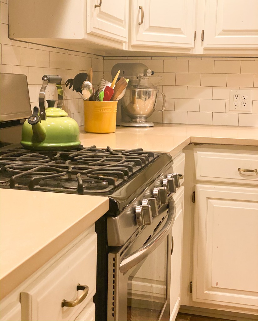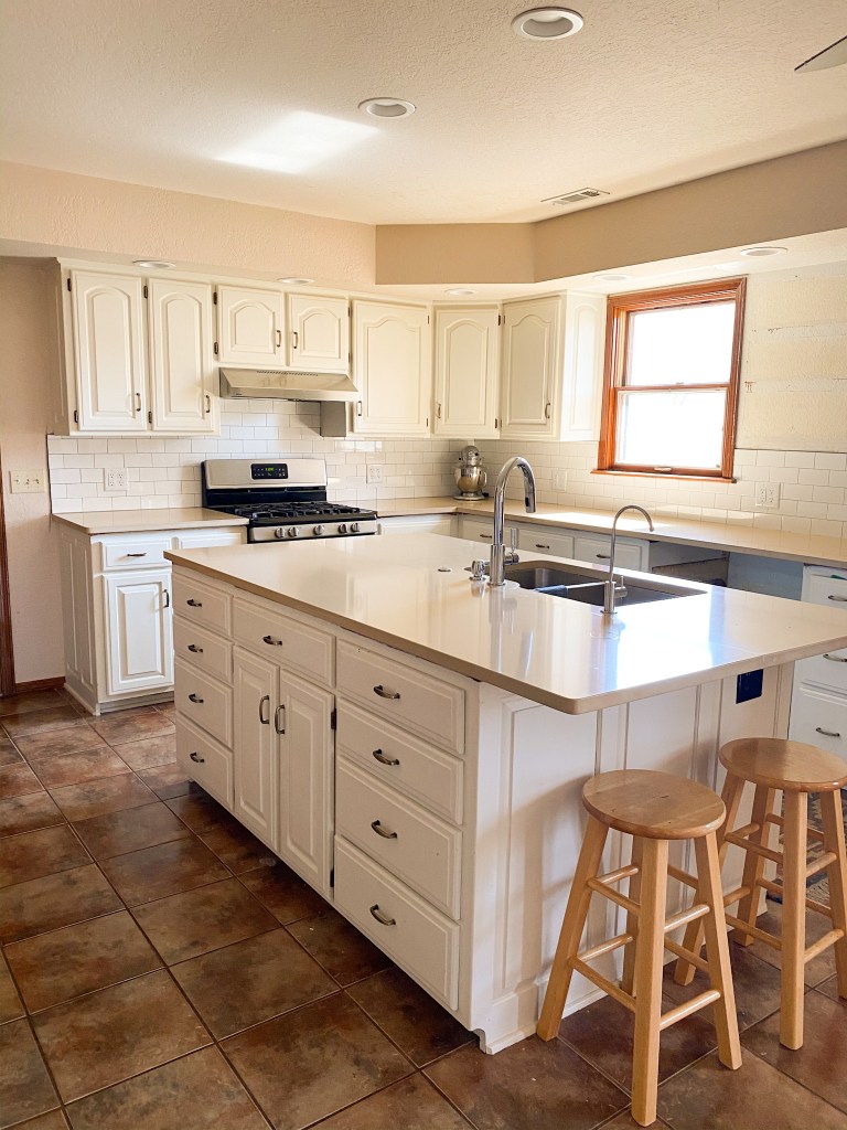 We finished our kitchen renovation a few weeks ago and I’m finally ready to share an update and pictures. If you’d like to see the process, here’s a link to part one of our kitchen renovation and part two of our kitchen renovation. To finish up this stage of our renovation, we needed to: